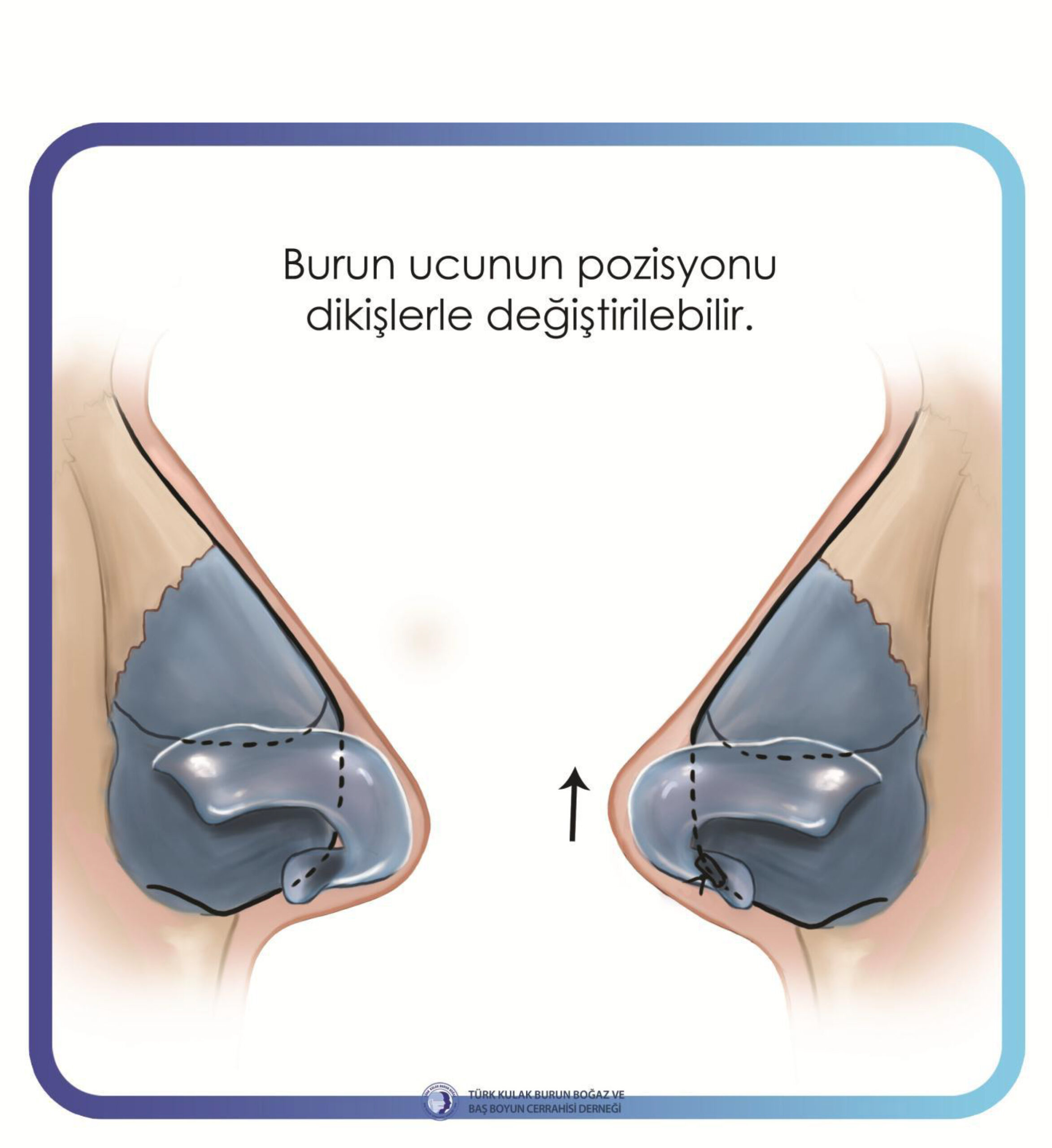 Burun ucunun pozisyonu dikişlerle değiştirilebilir.